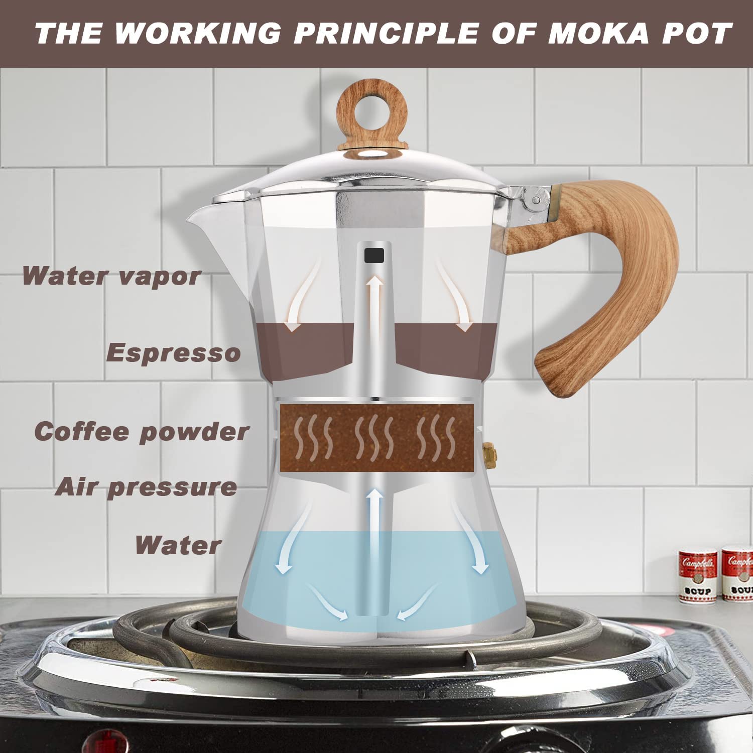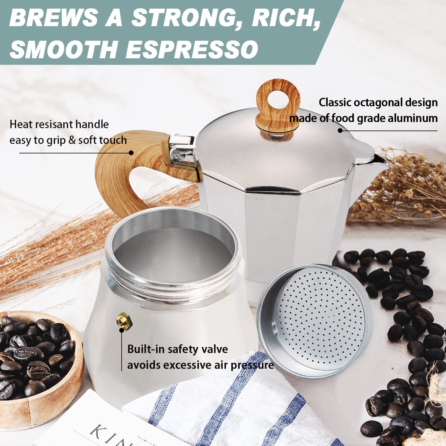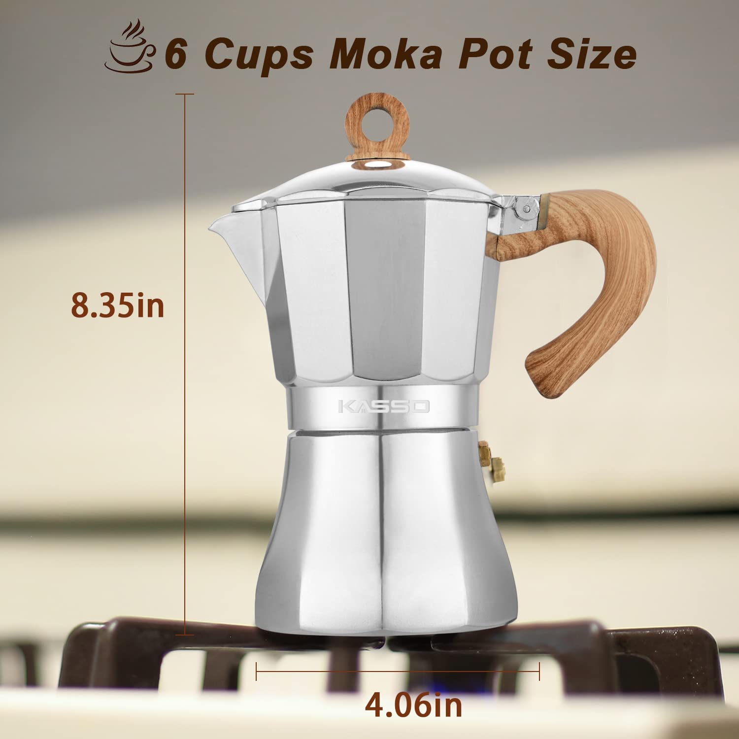- Elegant & Durable Design: This espresso coffee machine is made of a food-grade aluminum body with a pressure valve for coffee essence to be extracted efficiently to make favorable coffee. A soft-touch imitation wood handle and the classic octagonal design have both classical shapes and modern lines to be a great addition to your modern home.